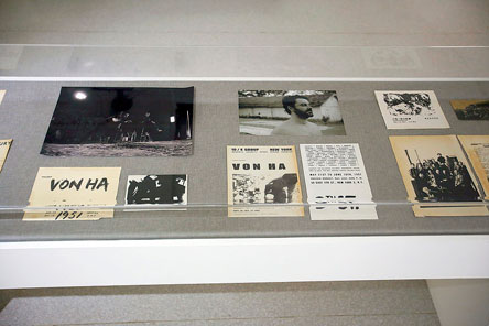 Diante dos jornais, cartazes reais, inclusive da 5ª Bienal de São Paulo de 1959, a confusão aumenta. Nas contas com a realidade, percebe-se que o artista não é o mesmo von Ha que nasceu em 1977. As evidências indicam que o homônimo viveu as poéticas daquela época. ‘As obras remetem a uma visualidade inscrita a partir do segundo pós-guerra, entre os anos 1950 e 1960, comumente denominada abstração expressiva ou gestual, pintura de ação, informalismo ou pintura matéria’, esclarece a curadora Ana Avelar. ‘Quase como um falsificador, von Ha se apropria de procedimentos, modos de fazer e mesmo da imagem de outros artistas, em trabalhos que evocam de Jackson Pollock a Alberto Burri. São citações e comentários de uma imagem genérica que pautou essa pintura de grande repercussão durante o segundo pós-guerra e que é celebrizada mesmo nos dias de hoje.’